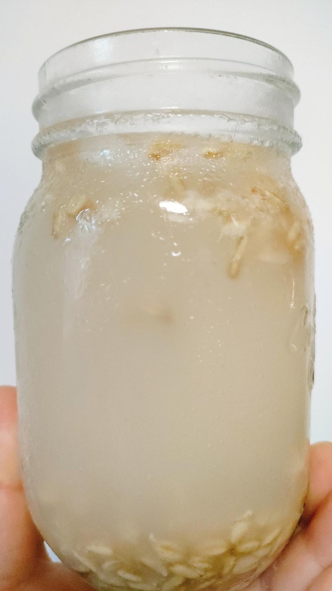 ①3天后盆底开始出现粘粘的蜜水,并可以看见小气泡,莜麦米也明显变得蔫软了,完全粘在一起成一坨状 ②尝下味道,鲜甜略带酒香就是发酵好了,如喜欢酒味儿重可继续发酵到喜欢的味道