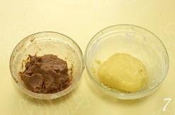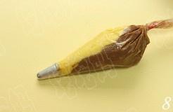 将两种面团左右各一半装入裱花袋中,配中号六齿花嘴
